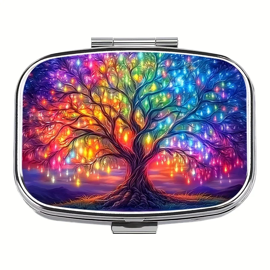 Featuring an artistic design of radiant, glowing trees, this compact pill case is both elegant and practical — perfect for carrying your daily vitamins, tablets, or supplements in style.